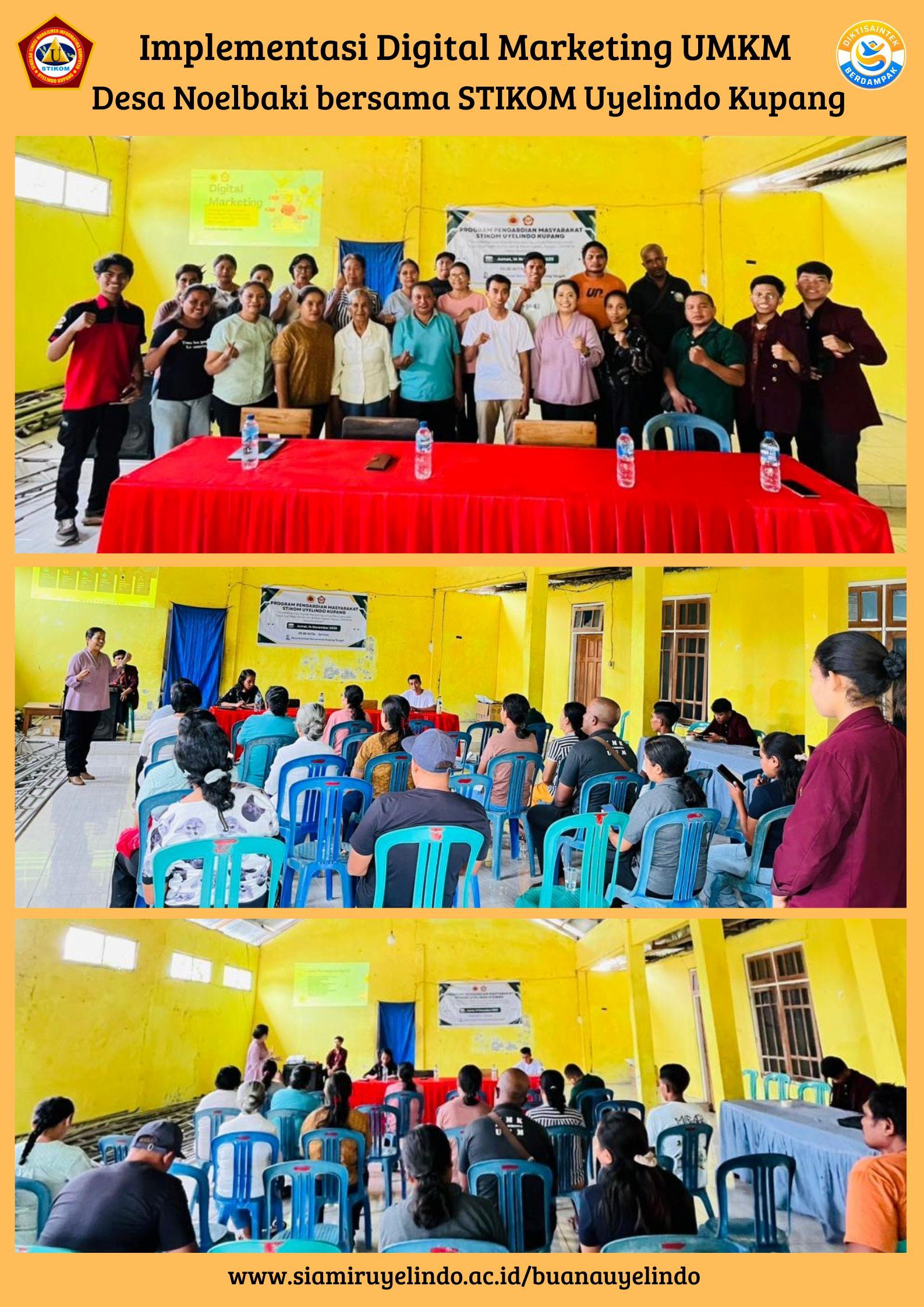 Buanauyelindo - STIKOM Uyelindo Kupang melaksanakan Program Pengabdian kepada Masyarakat (PkM) di Desa Noelbaki, Kabupaten Kupang, pada Jumat, 14 November 2025. Dalam pertemuan dengan aparat dan masyarakat Desa Noelbaki, dari STIKOM Uyelindo Kupang, Ibu Erna R. Nubatonis, S.Kom., M.T, sebagai Ketua Tim PkM dan Anggota, Ibu Febi E. Messe, S.Kom., M.Cs, beserta 4 orang mahasiswa, sedangkan dari pihak Desa Noelbaki, tampak hadir Kepala Desa Noelbaki, Bapak Oktovianus Logo Buke, S.H, Sekretaris Desa, beberapa Kepala Dusun serta masyarakat/kelompok UMKM Desa Noelbaki Kabupaten Kupang.
