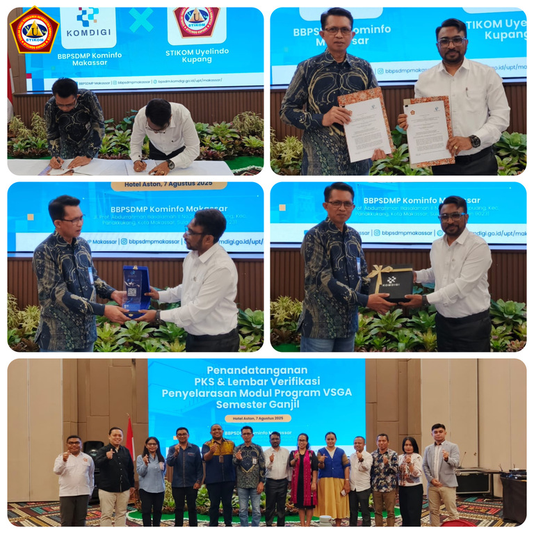Sebagai perguruan tinggi IT pertama di Nusa Tenggara Timur, STIKOM Uyelindo Kupang terus memperkuat komitmennya dalam menghadirkan pendidikan tinggi IT yang berkualitas, tidak hanya lewat fasilitas akademik dan penunjang yang lengkap dan modern, tapi juga sumber daya manusianya, STIKOM Uyelindo Kupang secara resmi telah melakukan penandatanganan perjanjian kerja sama (PKS) dengan Komdigi Vocational School Graduate Academy (VSGA) Makassar pada Kamis 07 Agustus 2025 yang berlangsung di Hotel Aston Kupang.