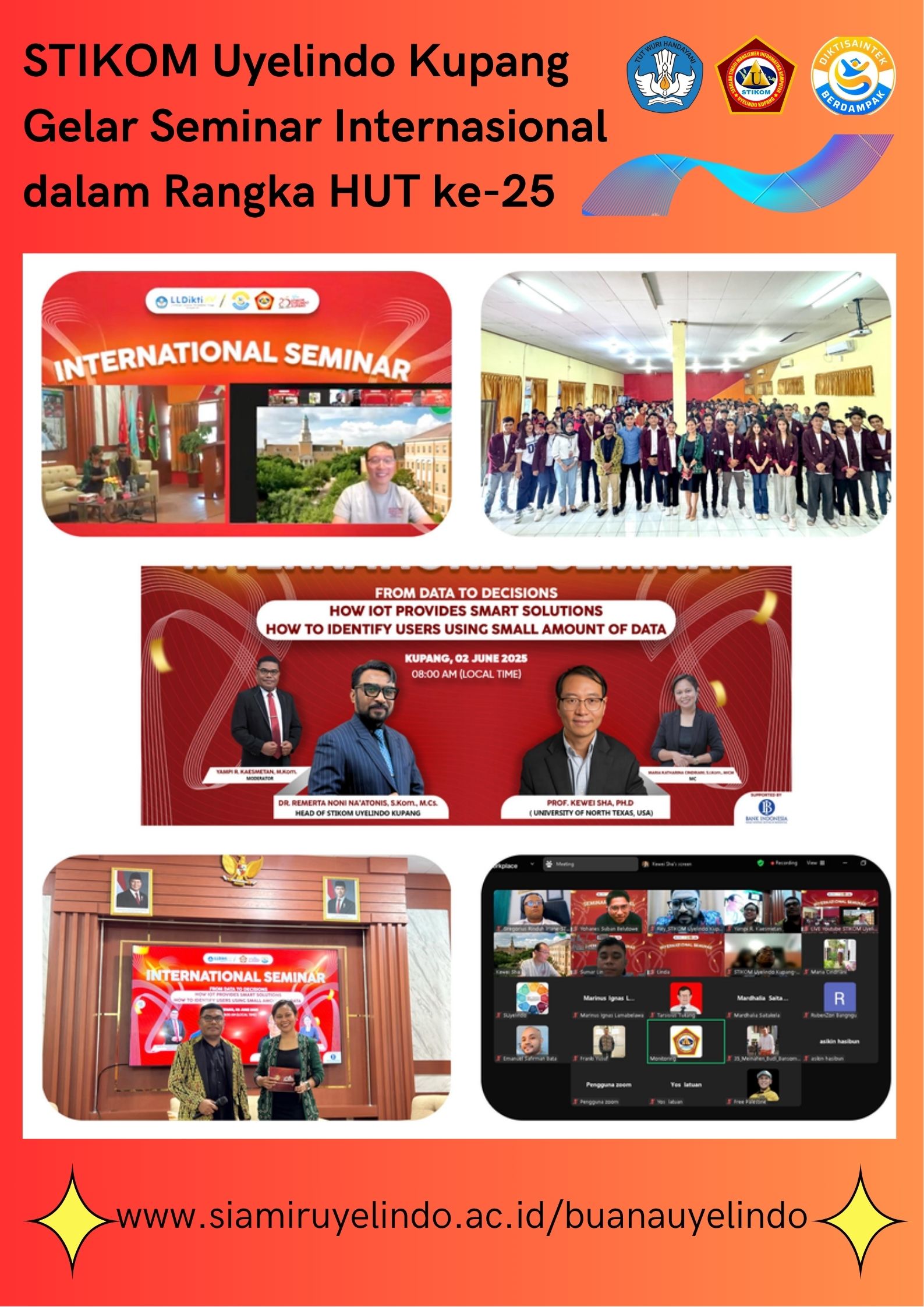 Buanauyelindo - STIKOM Uyelindo Kupang menyelenggarakan Seminar Internasional dalam rangka memperingati Hari Ulang Tahun (HUT) ke-25 STIKOM Uyelindo Kupang, Senin, 2 Juni 2025, bertempat di Aula Kampus STIKOM Uyelindo Kupang.